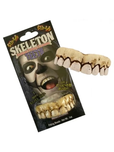 Take your skeleton costume to the next level with these great quality skeleton custom fitting teeth by Billy Bob’s. These custom fitting skeleton teeth will finish off your skeleton Halloween costume as the perfect Halloween accessory! Complete your Mr. bones costume with this awesome Halloween skeleton teeth.