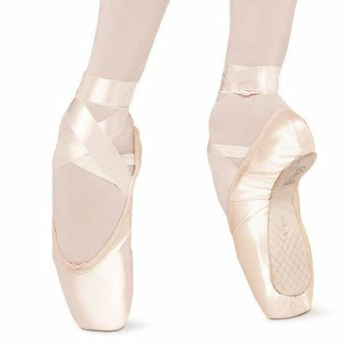 DESCRIPTION The Sonata pointe shoe shank/insole is not secured at the heel, with less resistance past the breakpoint the dancer will feel well supported and uplifted when ‘en pointe’. Inside the box at the platform is a soft sponge cushion insert which gives added comfort and protection when standing ‘en pointe’ also acting as a shock absorber. This shoe actively supports the dancer with flexible arches under the metatarsals while still allowing the foot to arch at the three quarter. Fine cushioning under the pleats soften the sound of the box. Ribbons sold separately Narrow heel shape – Hugs the heel and reduces creasing Wide platform – Gives lateral support and balanced distribution of weight Inner rubber toe cushion – Comfort when standing ‘en pointe’ Unsecured insole at heel – Allows heel to arch away from instep Standard ‘A’ paste – Has resilience and is less affected by climatic conditions such as heat and humidity Features: Upper Material: Satin Outsole Material: Leather Lining Material: Cotton Sock Material: Suede Sole: Full Length Heel Cushion: No Dancer Level: Advanced student and professional Colours: Pink Widths: B, C, D, E Sizes: 1 – 9 Drawstring: Cord Last Shape: Conventional Shank/Insole: Unsecured at Heel Vamp Length: Medium Vamp Shape: U Platform Shape: Wide Sides/Seam: Medium – Low/ Straight Heel Shape: Narrow Paste: ‘A’ Paste Box Cushioning: Toe Cushion