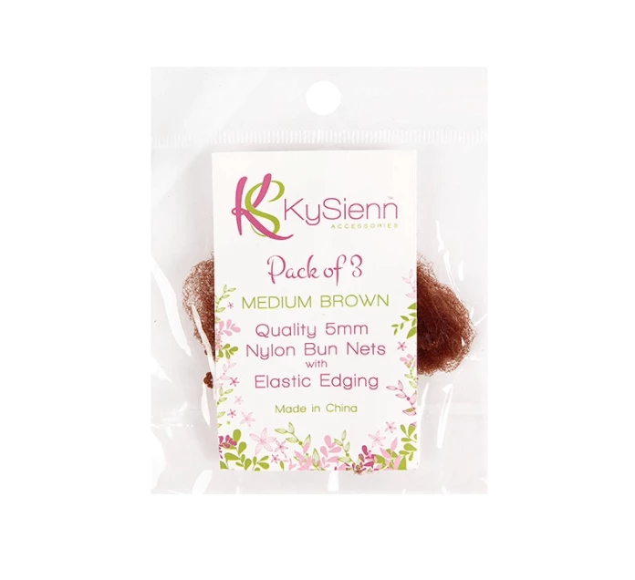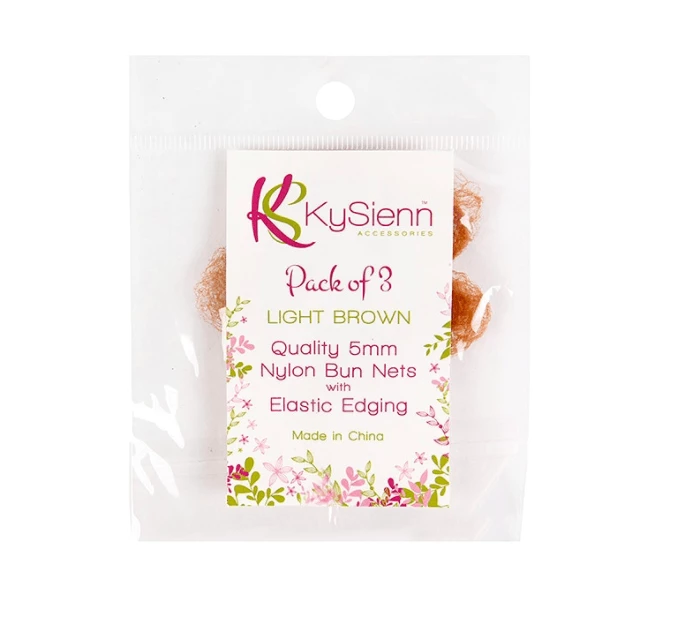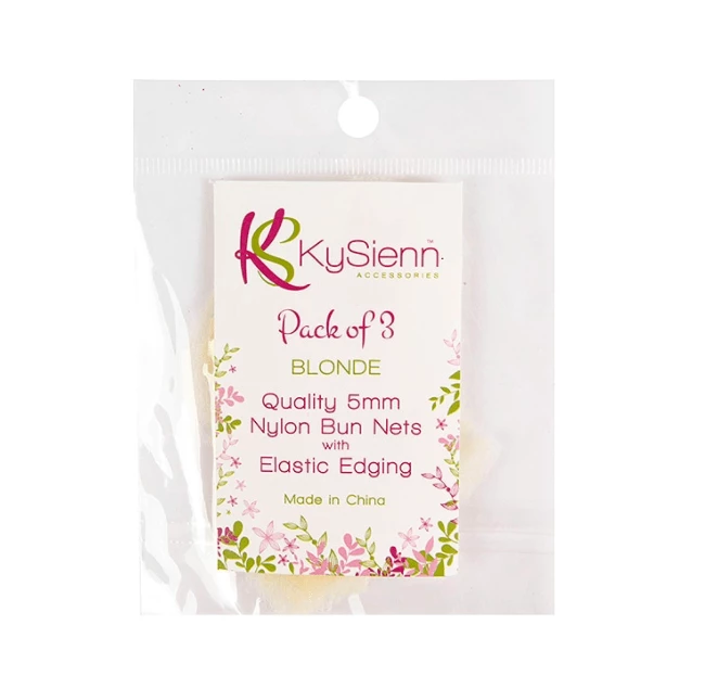 KySienn Bun Nets are a high quality 5mm nylon net with elastic edging for added strength and durability. A single hair net can be stretched to 13cm in diameter.