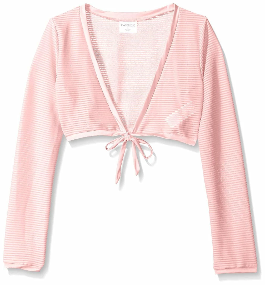 This sheer striped shrug is the perfect complement for any of the Enchanted Dream collection leotards. You can also pair it with a leotard she already has for a fun new look! Perfect for that fussy dancer who is always too hot or too cold. This light shrug offers just the right amount of warmth, and just the right amount of style.