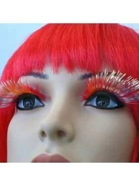 False Eyelashes Red Feathery w/ Silver Tinsel Long dramatic. Soft red feathers with silver tinsel Perfect use for professional salon, make up studio or home use. Compliments a fancy dress look. Great for dance costumes or events like Mardi Gras and Halloween. Can be removed by eye makeup remover. Simple to use and comfortable to wear! May be trimmed in width & length to suit your personal preference Style: Feather Color: Red & Silver Material: High Quality Synthetic Fiber Included – Eyelashes (Top) x 2 & Glue
