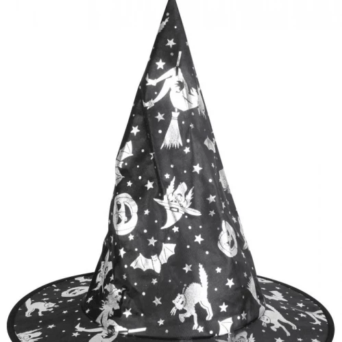 New ✔️ Carnival Products Witch Hat – Silver Cats Bats Witch ✨