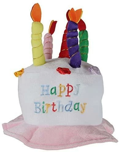 celebrate with your loved ones with this heartwarming gift. This birthday cake hat is sure to make the celebration memorable and keep the laughter rolling.. This plush birthday hat features a colorful “Happy Birthday!” headline with a blue trim. vibrant candles sit on top. Finished with sweet ruffled tulle decor, this birthday hat is a great piece of flair for the birthday.