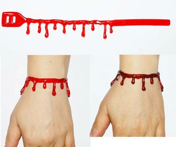 This horror costume bracelets will add a gory, slashed, bleeding wrist effect to your zombie or Halloween fancy dress costumes. Dripping blood bracelet.