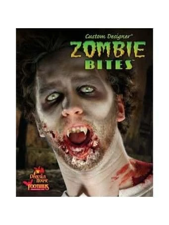 Custom Designer Perfect Bite Fangs – Zombie Bites. Includes: 2 Fangs & 2 Vials of coloured Tooth Enamal Paint (to create a scary rotted tooth look). Best wearing & most comfortable fangs ever made. Streamlined for comfort with superier anchoring. Worldwide patent. NON TOXIC and odorless custom formulated AlphaOne Thermoplastic putty beads make for a perfect fit. No refills are necessary as the beads can be remelted in warm water to readjust for a perfect fit. Full instructions are enclosed in the pack. Incredibly realistic ! Cool drinks can be consumed while wearing the fangs. Packaging: The fangs are displayed in a coffin inside a clamshell blisterpack, hangsell.