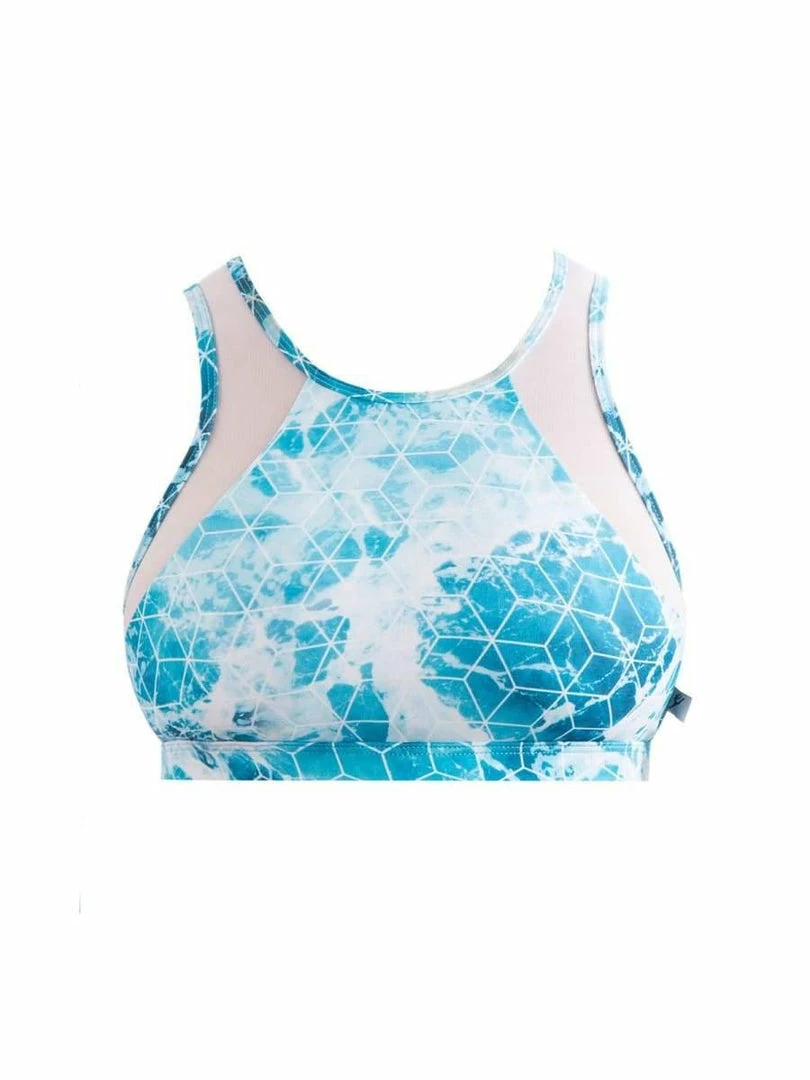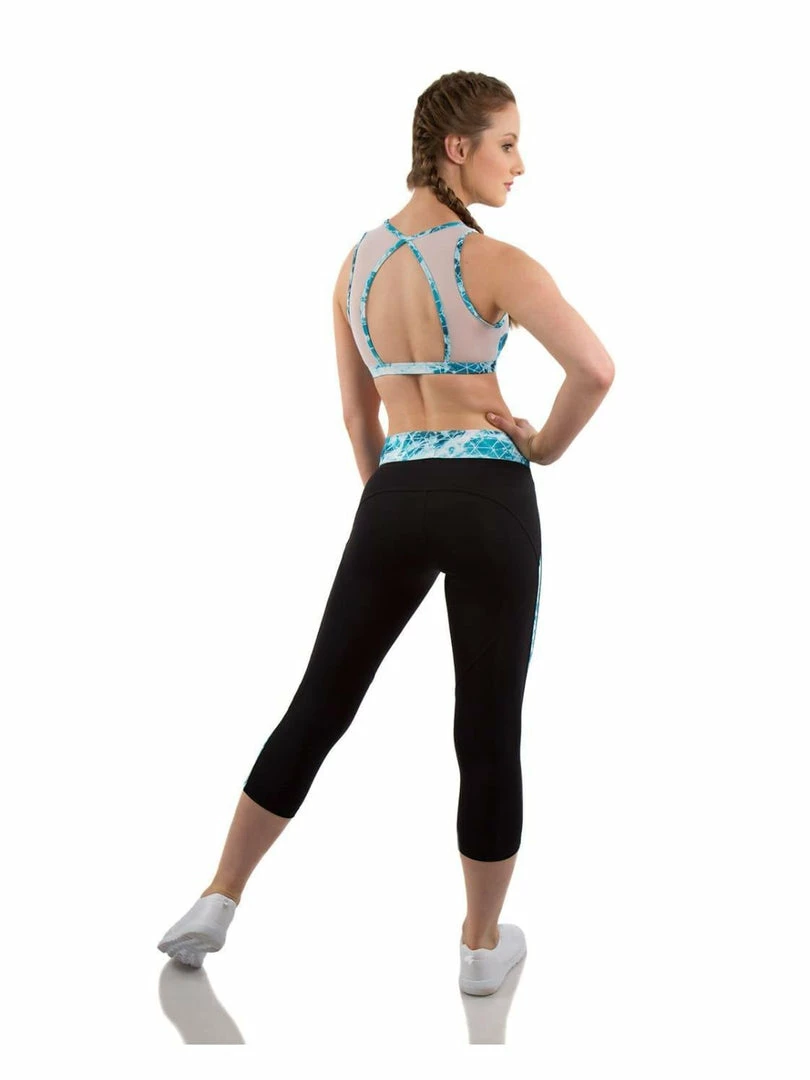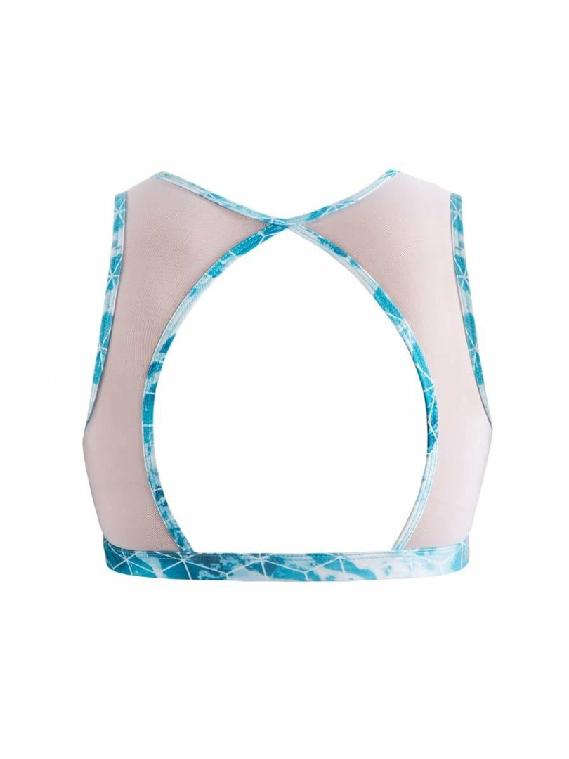 The vibrant Alaina Crop Top features a high neckline with mesh panels and a beautiful open back detail. Made from dance dry material that keeps you cool during high-energy activity, layer this striking top underneath any of our Crystal Tide singlets for a modern, sports-luxe look.