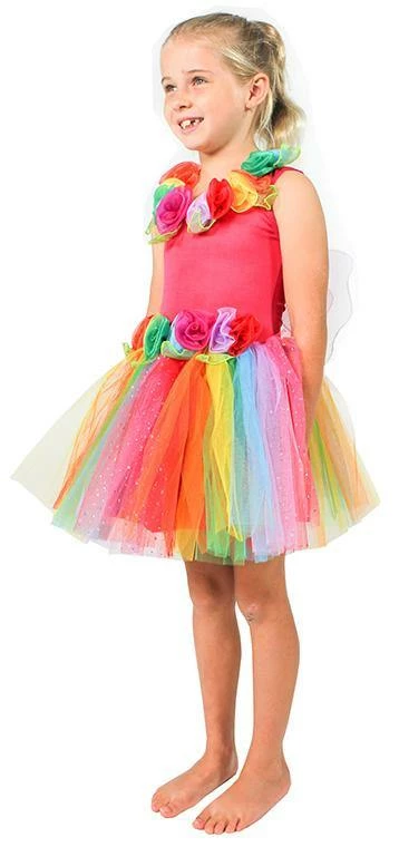 The most Enchanting Fairy Dress! This fairy dress has sparkles in the petalled skirt and pretty wings. Featuring giant roses studded across the bodice and waistline and gorgeous wings that flutter when worn. One of our most popular dresses.A very pretty fairy dress with sparkles in the skirt and wings. Lovely rose studded bodice.