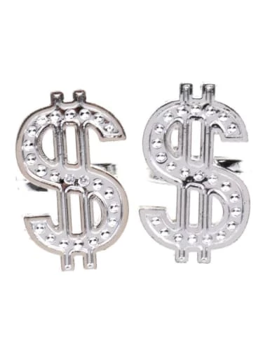 Pack of 2 silver plastic dollar sign rings