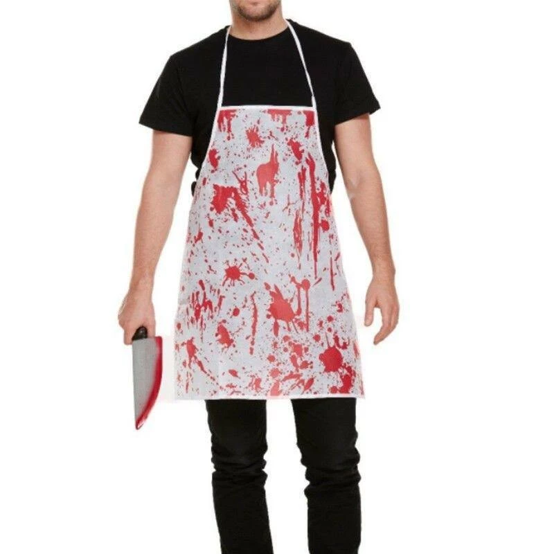 bloody apronΒ comes complete with blood splatters printed on a white background. Butchers, Cooks, Bakers can now cook up a deadly halloween meal, with a Chefs apron dripping in Blood.Β