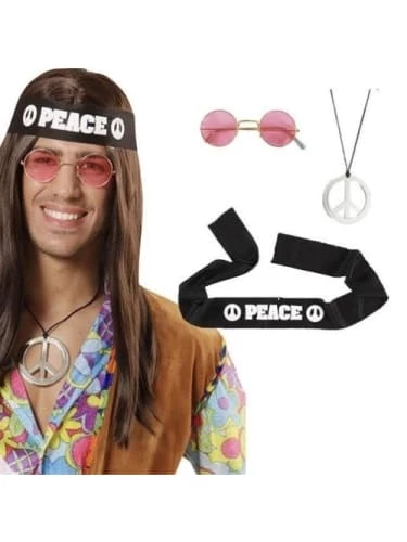 includes: “Peace” Headband, Pendant, Hippie Glasses.ย
