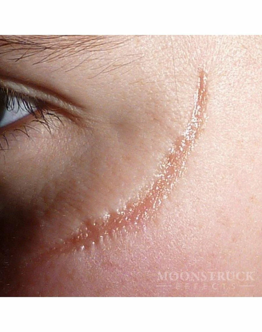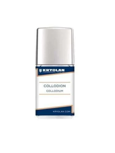 Collodion is a classic product for creation of simulated scars (also known as Scarring Material). Collodion, which dries extremely fast, is first coated onto the skin. The skin is then pressed together to form a fold. The optical impression of a scar results. The artificial scar can be colored with Supracolor. Collodion contains ether and acts to degrease the skin. After being used, the skin should be treated with cream that contains fat, and the skin should be protected from being stressed.