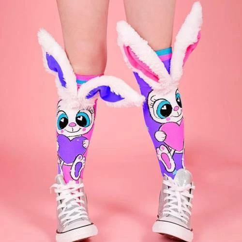 These cool kids socks are perfect for Easter and are detailed with gorgeous little hearts and stars. The adorable, fluffy and moveable ears make for an exciting accessory and can be bent how you like them. The bright, bold and beautiful pink and purple colours, will really make your legs pop for Easter time! ?????????Dispatch date is 25th of March! These fabulous socks are made using lots of intricate materials (a plastic tubing supported with wire). The ears are moveable and unique, and so, we suggest that you are extra-aware when wearing and cold hand-washing these socks. Just in the unlikely case the wires in the ears become loose.