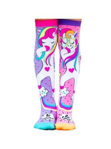 Keep Calm and Dab wearing MADMIA latest Unicorn Dab Dance Socks with rainbows, love hearts and clouds.