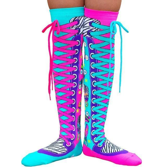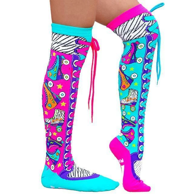 Let the good times roll wearing our cool Roller Skate Socks with shoelaces and zebra print.