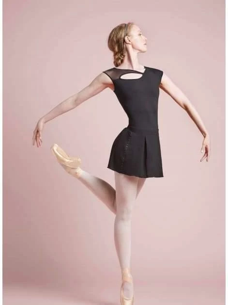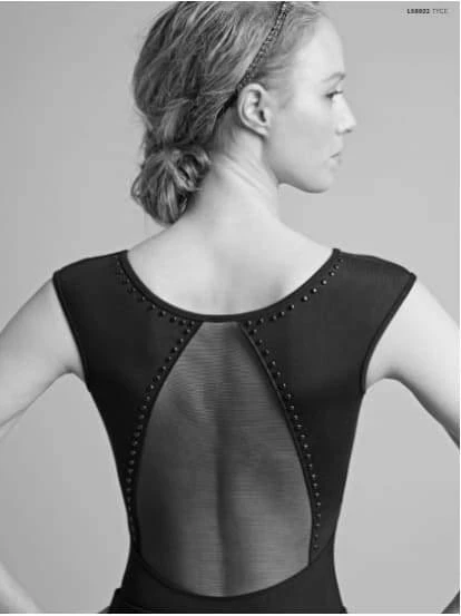 Studded back, keyhole front, cap sleeve leotard FABRIC Main – 90% Nylon, 10% Spandex Matte Contrast – 90% Nylon, 10% Spandex