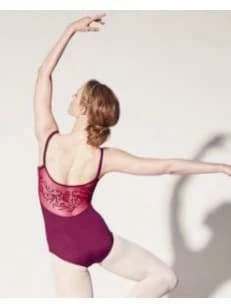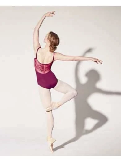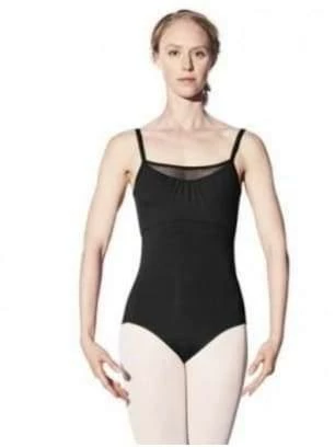 Vine flock back, front gather, wide strap camisole leotard FABRIC Main – 90% Nylon, 10% Spandex Matte