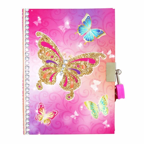 Butterfly Skies Strawberry Scented Diary makes writing fun. This lockable diary features a strawberry-scented hardcover, a lock and 2 keys, perfect to keep your secrets safe. Lined interior pages aid in neat handwriting.