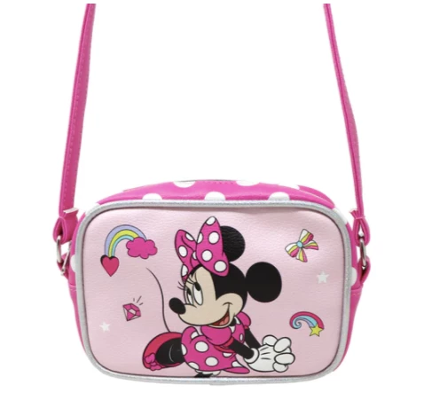 Those who adore Disney Minnie Mouse, fashion and fun! This limited edition Disney Minnie Mouse crossbody bag will happily carry all your essentials in one zip-up compartment. Featuring Minnie Mouse with vibrant, fun, Bow-tastic designs that radiate positivity and good vibes. The soft vegan leather shoulder strap can be worn across the body or over the shoulder.