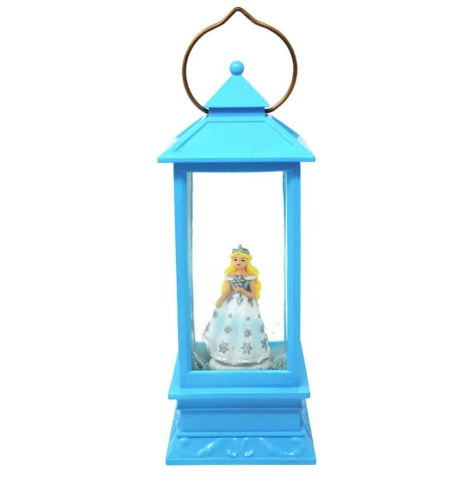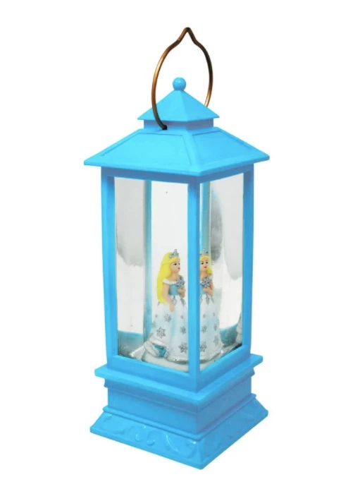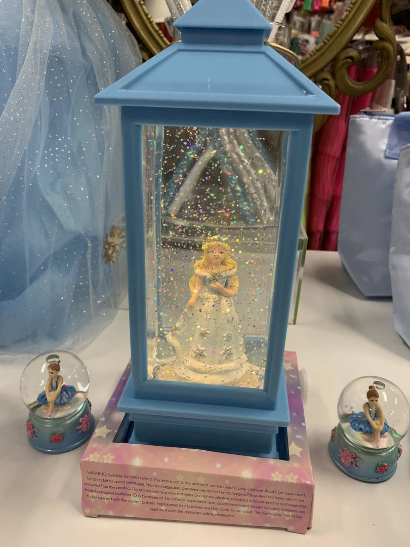 Enjoy the sparkle and shine of this magical glitter lantern. Switchthe lantern on to illumate a dark room and be mesmerised as glitter swirls around the figure inside. When turned off this lantern is an attractive decorative ornament. – Auto swirling glitter – Warm LED lights – Snow princess figurine – Pale blue lantern – 10W x 27.5H x 10.5D cm – Ages 8+ – Wipe with a damp cloth
