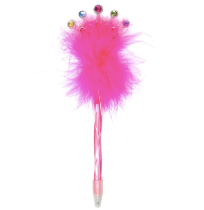 Make writing more fun with this crown topped fluffy pen. Features a crown topper, on a bed of magical coloured fluff. Pen colour and styles may vary and will be selected at random upon ordering.