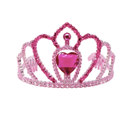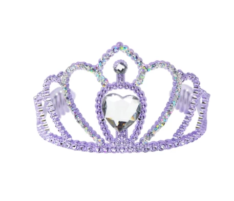Let her fairytale begin with these Princess Crowns. It features integrated combs so it can fix securely into the hair during play. Featuring a metallic purple base with chunky pink glitter and a dazzling pink heart gemstone, this crown is perfect for play pretend!