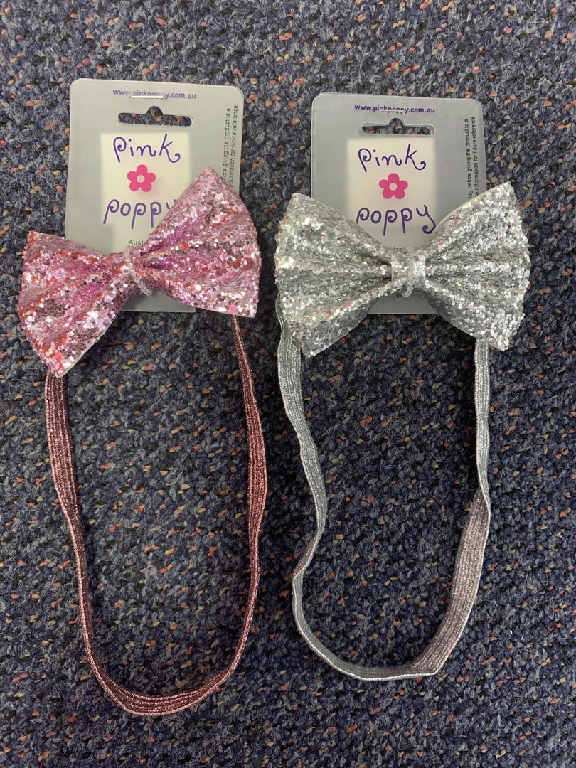 Cheap ๐ Pink Poppy Headband – Glitter Bow Hair Accessories ๐คฉ