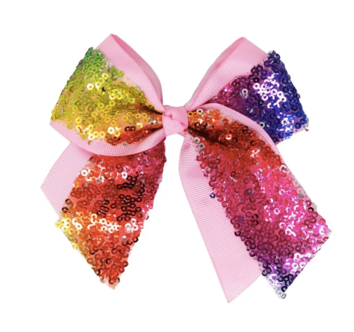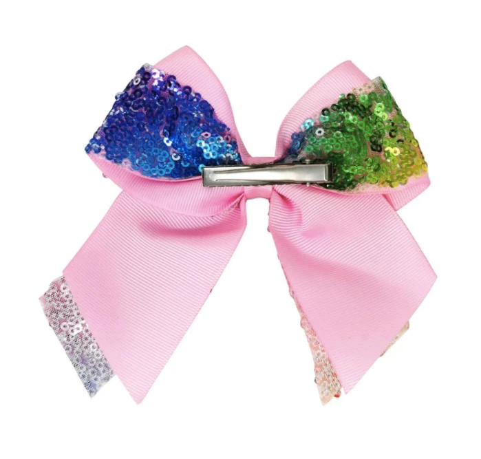These Jumbo size Rainbow sequin bows make an adorable gift. These hair clip bows will sparkle in the light and brighten up any outfit.