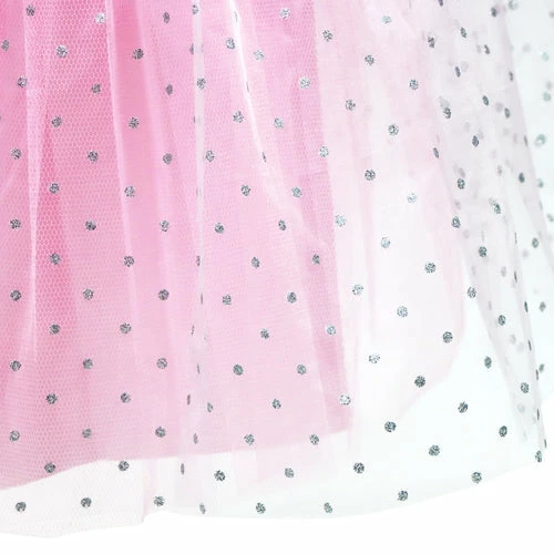 An eye-catching and elegant piece. This Romantic Ballet Sequinned Party Dress is embellished with an iridescent disc sequins centre panel. The long style skirt features silver glitter spotted organza, voluminous tulle under layers and a silky lining. While the elastic enclosed waist and adjustable shoulder straps make the perfect fit.