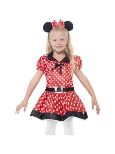 This Disney Minnie Mouse inspired girls costume comes complete with a Red Polka Dot Dress & Minnie Mouse Ears Headband. The perfect Halloween costume or dress up outfit.