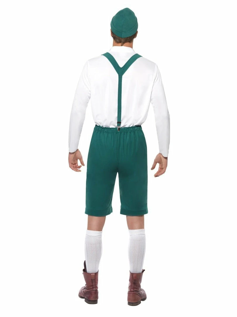 Check out our brilliant adult men’s German Oktoberfest fancy dress costume which comes complete with a pair of green lederhosen shorts with braces, long sleeved white top and coordinating green hat. Ideal for any Beer festival.