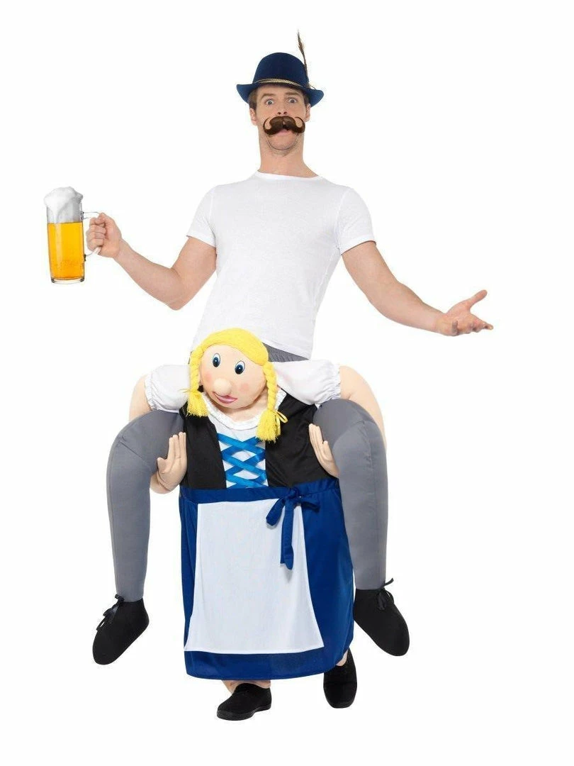 Raise your stein and take a load off this Oktoberfest in our Piggyback Bavarian Beer Maiden Costume, This great costume comes with a One Piece Step in style with a traditional Bavarian maiden with Mock legs. The padded Mock Legs are attached so it looks as though you’re riding on her back.