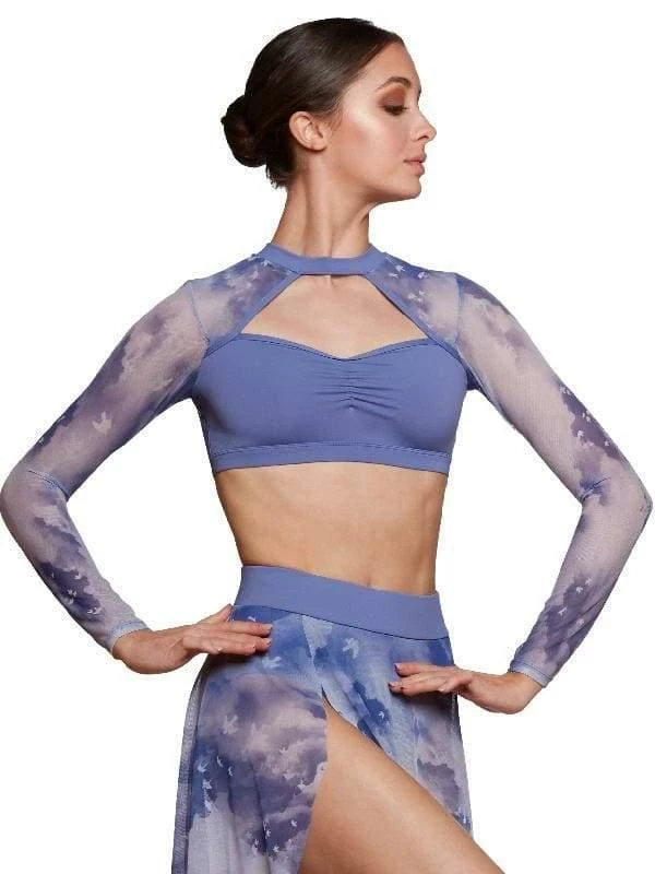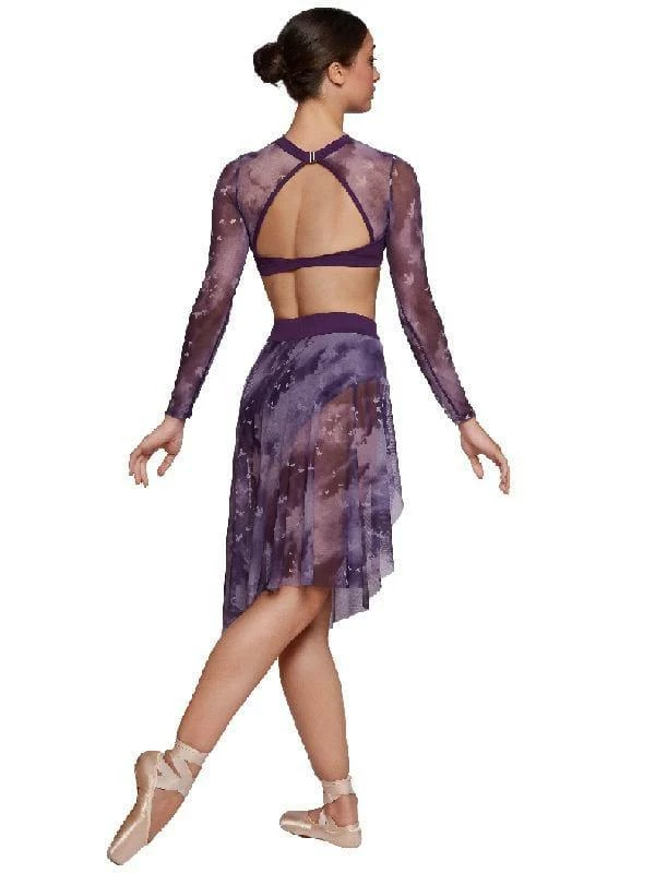 An enduringly popular design has been taken sky-high with the exclusive printed soft mesh used in the Skylar crop top. It is perfectly paired with the asymmetrical high-waisted Skylar skirt, which includes built-in briefs. Both garments are available in Black, Aubergine and Blueberry.