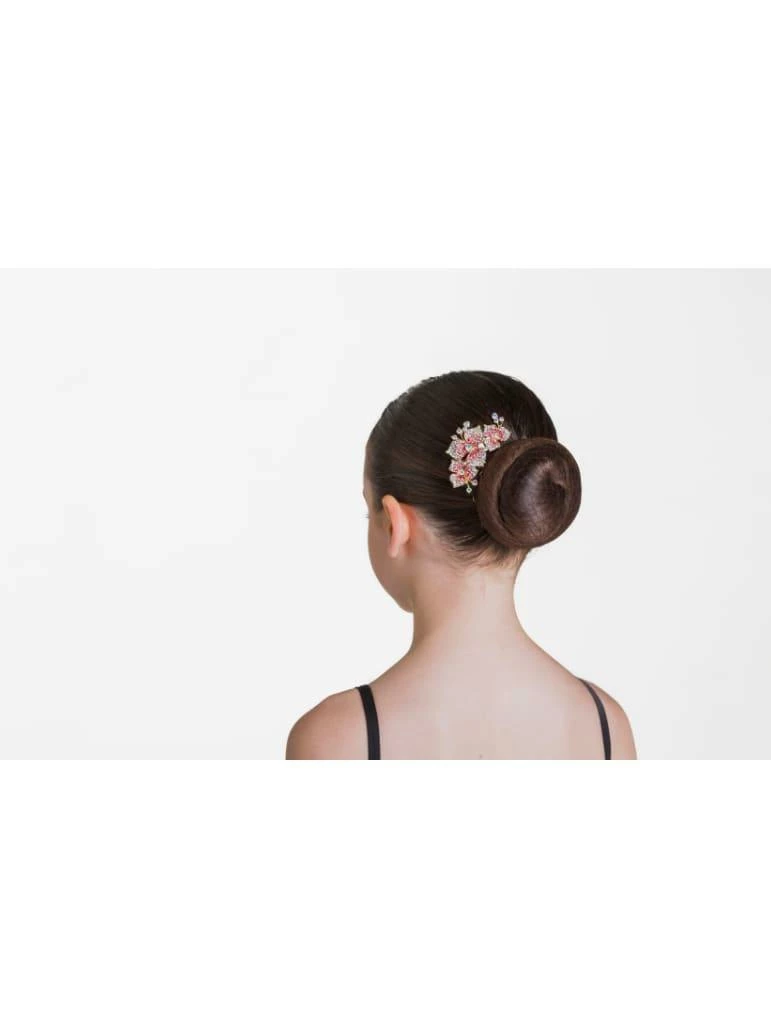 The Bright Sparkle Hair Comb is a beautiful and elegant hair accessory. Featuring clear crystals and pink crystals on a small hair comb. This floral piece looks great no matter where you wear it on your hair. The lovely crystals on the fine metal comb will add beauty and elegance to any dance performance, special occasion or wedding day look.