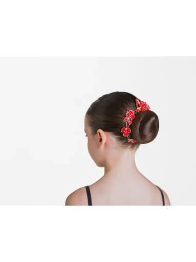 The perfect accessory to your performance, the Red Flowers will be the highlight of your look.ย If you like a unique hair peice that stands out, this item is for you. The bright colors and different shapes break away from traditional dance wear. This hair peice is one of a kind