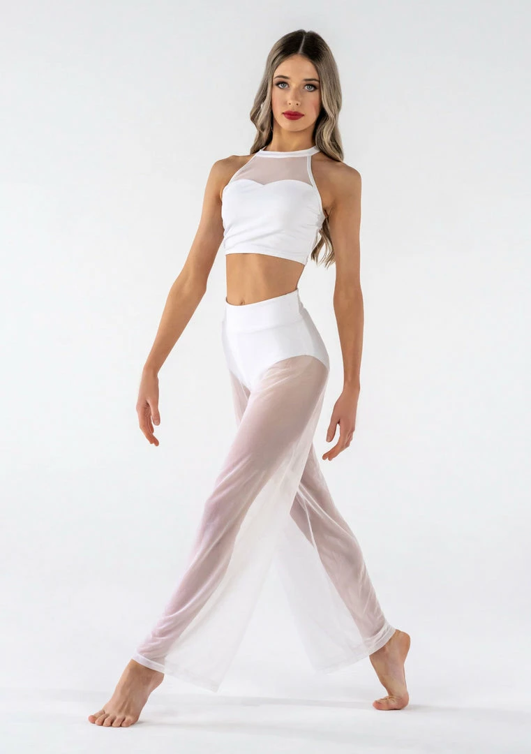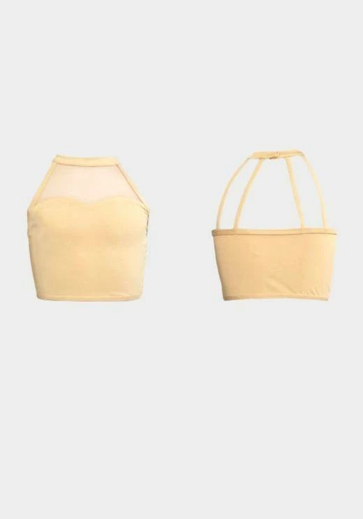 This stunning crop features a mesh sweet heart neckline that follows through to a flattering halter design. stylised strapping through the back makes this a versatile crop for any style.
