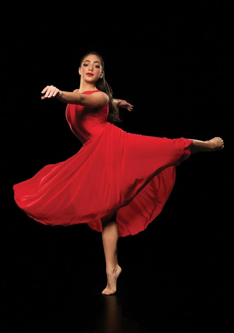 featuring a flattering plunge mesh panel through the centre, a beautiful cirlce skirt and stunning open back. The Skylar will have you making a statement on stage.ย