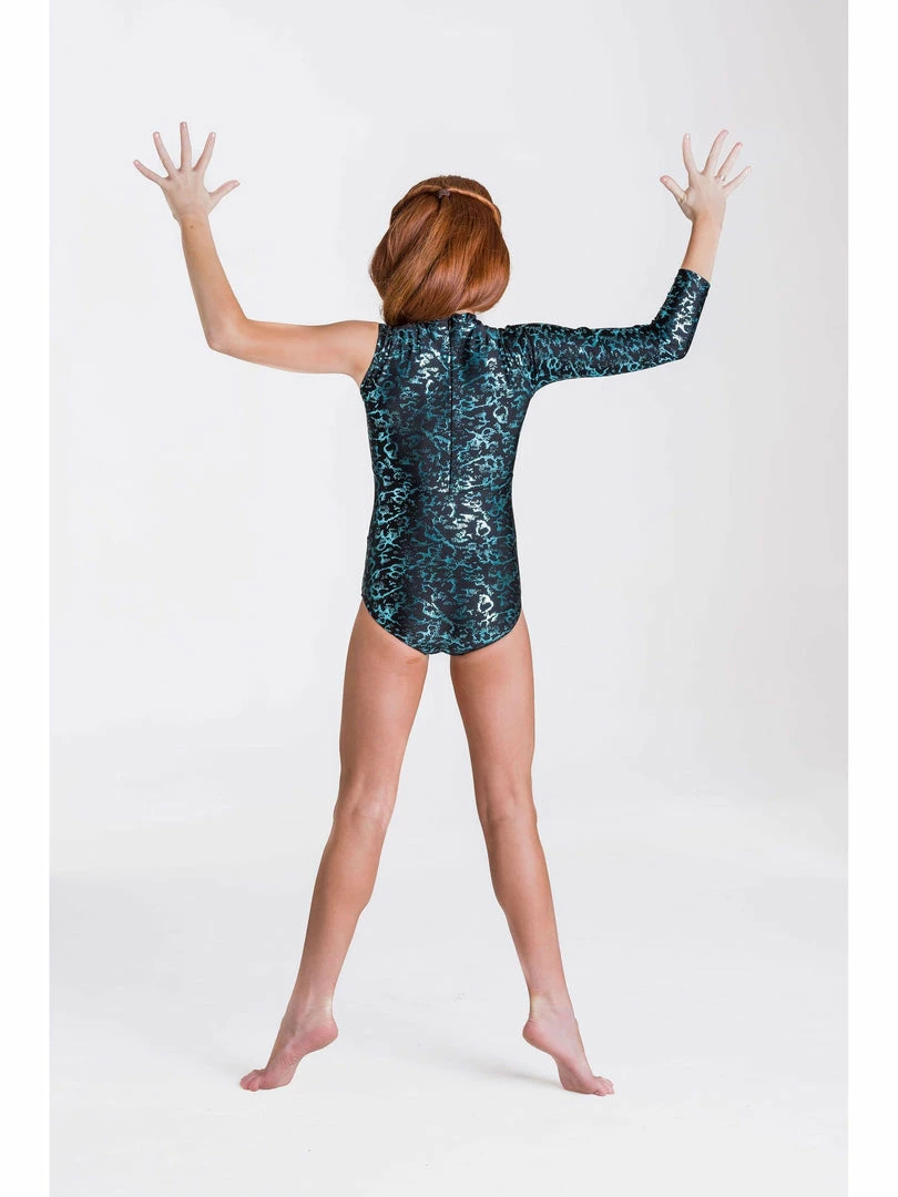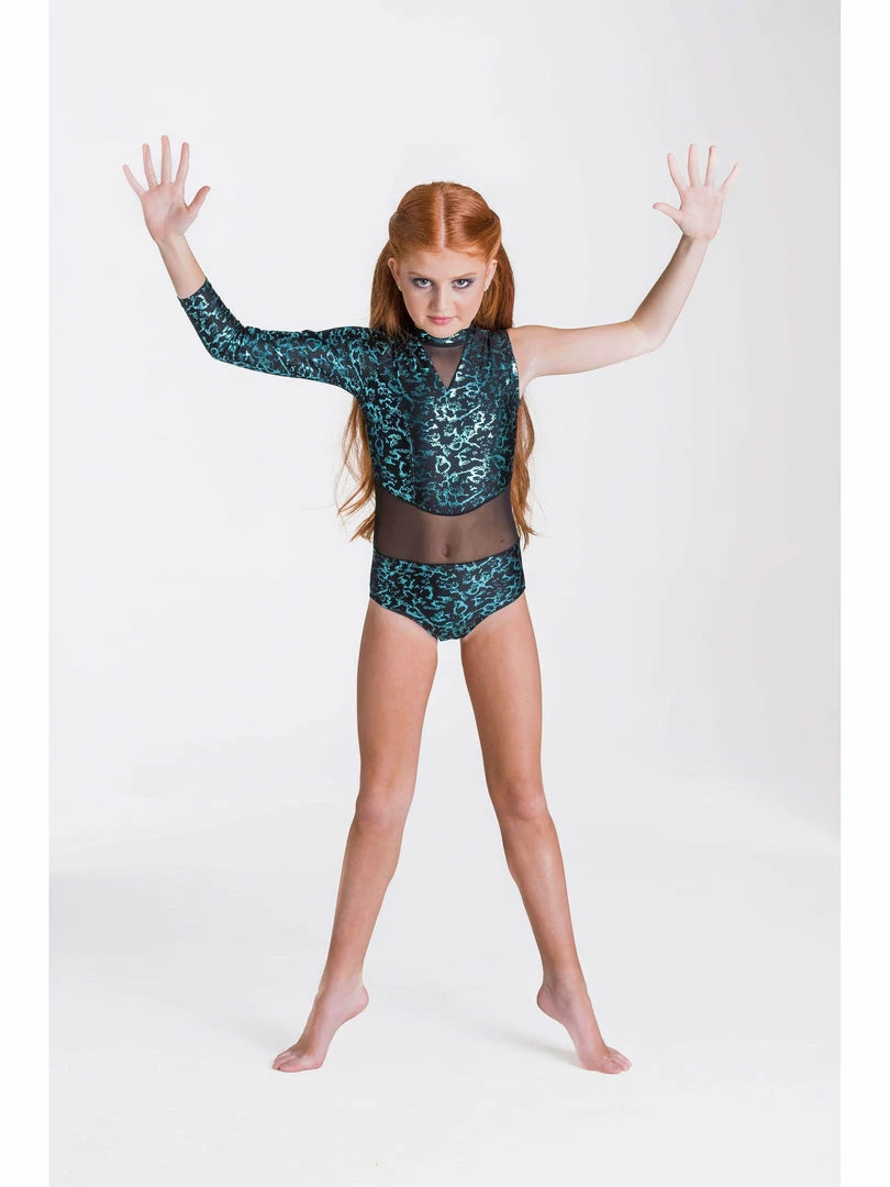 Be Fierce. Be Fabulous. This Metallic Leotard has a Nylon Bodice, with metallic print and mesh panels.