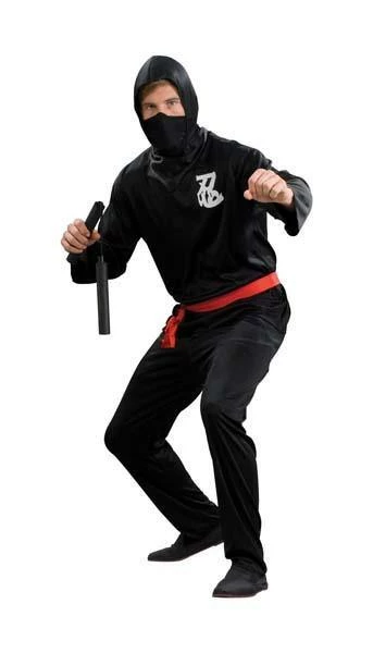 The ultimate assassin costume, no one will find you in this all in black Ninja Mens Costume. Just go on your stealthy way in this jacket, pants and hood. Also includes a face wrap