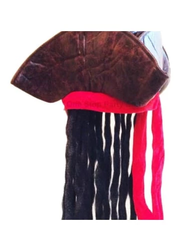 Brown soft pirate hat with red tie and dreadlocks attachedย
