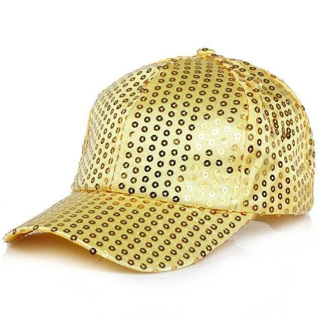 The gold hat is covered with shimmering gold sequins to make you stand out on the dance floor.
