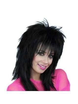 Shaggyย Layered 70′,ย 80’sย style wig.ย Sheenaย Easton, Rockstar, Pop Star. Unisex. Colour – Black.